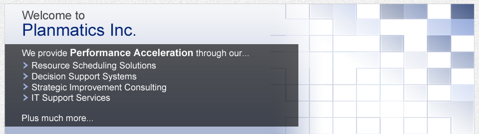 Planmatics is a leader in the development and implementation of decision support systems for public and private organizations. Planmatics provides systems that apply sophisticated Operations Research concepts to solve real world operational challenges.