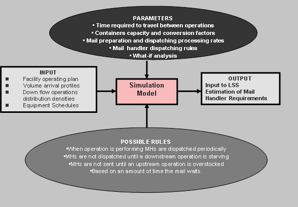 Below is the Mail Handler Simulation Model Concept that was developed by Planmatics for a client